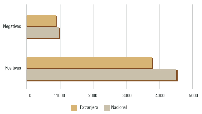 3.2 Opiniones positivas y negativas por grupo de origen