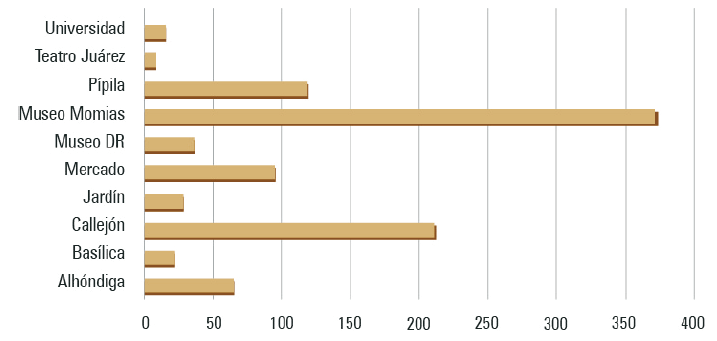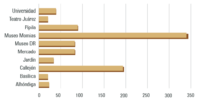 Por ello, se estudiaron las narrativas y temáticas que se refieren a aquellos atractivos que gozaron de mayor interés por parte de los viajeros y usuarios de esta plataforma, registrando una cantidad considerable de reseñas (por lo menos más de 500). A partir de la revisión del contenido de las OOV  sobre estos atractivos, se identificaron aspectos positivos y negativos percibidos por los visitantes en estos espacios, así como las temáticas dominantes al reflexionar, comunicar y evaluar su experiencia. Se piensa que esta información es bastante útil no solo para conocer las percepciones reales de los viajeros a la ciudad de Guanajuato, sino también para identificar y proponer áreas de mejora dentro de la gestión turística de estos atractivos.