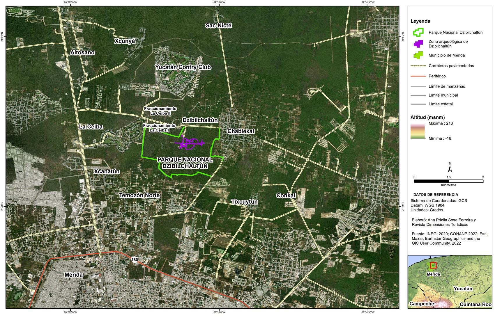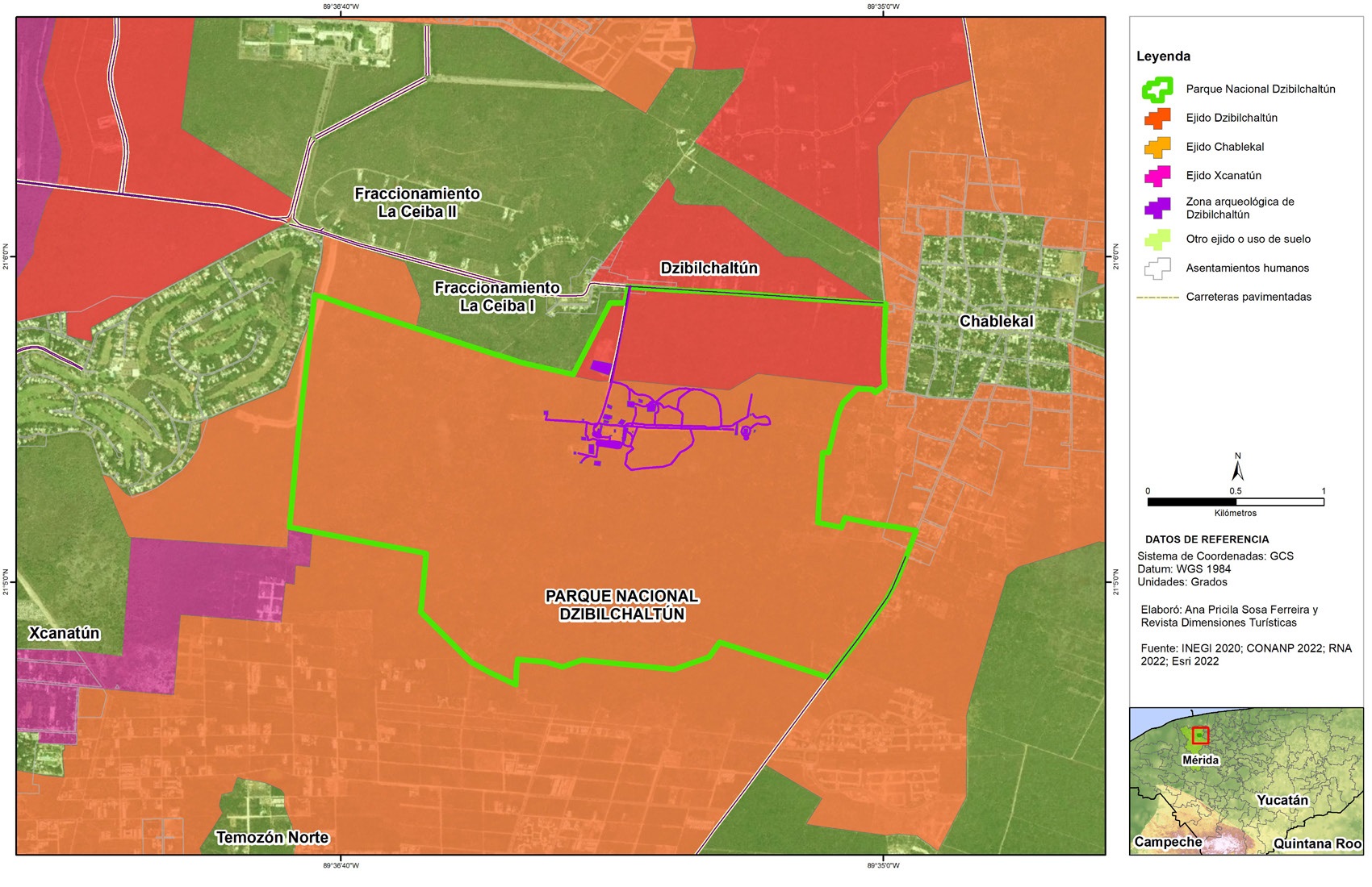 Figura 2. Ejidos de Dzibilchaltún, Chablekal, el Parque Nacional de Dzibilchaltún y la Zona Arqueológica