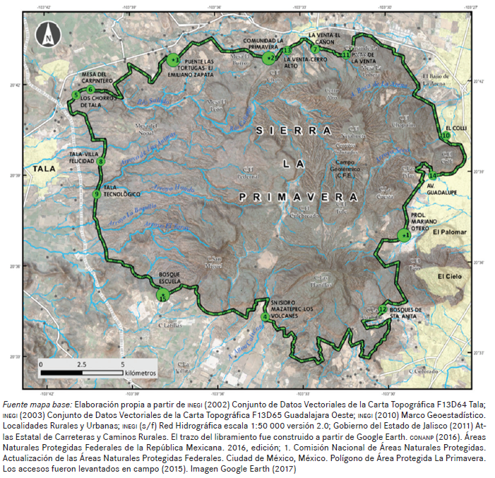 Se debe aclarar primero que, para efectos de este estudio, el bosque La Primavera será referido como sierra La Primavera (SLP), en función de que dentro del concepto de “bosque” se encuentra limitado el relieve. La justificación que lleva a esta denominación se basa en el origen de esta entidad; supone la formación de domos y estructuras de naturaleza riolítica, que fueron formando cúpulas, frentes marcados, barrancas y valles; se acude a una referencia topográfica diversa que ha sido objeto de una apropiación sociohistórica.