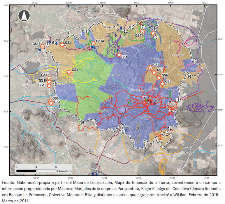 De acuerdo con los informantes, pero sin existir un número oficial, se estiman alrededor de 2 500 ciclistas cada fin de semana; 90 % del ingreso de ciclistas al ANP se realiza por la entrada de Mariano Otero. Esta afluencia ha detonado distintos procesos en la escala del medio físico, pero también en la escena social, fundamentalmente porque la mayoría de las rutas son reportadas como “no oficiales”, ya que no tienen el seguimiento apropiado para evitar erosión y desgaste del suelo, ni para llevar a cabo acciones de restauración de las mismas. La parte social se ve afectada debido a que son rutas que pasan por predios que no están destinados al uso público, lo que supone una invasión constante a la propiedad privada.