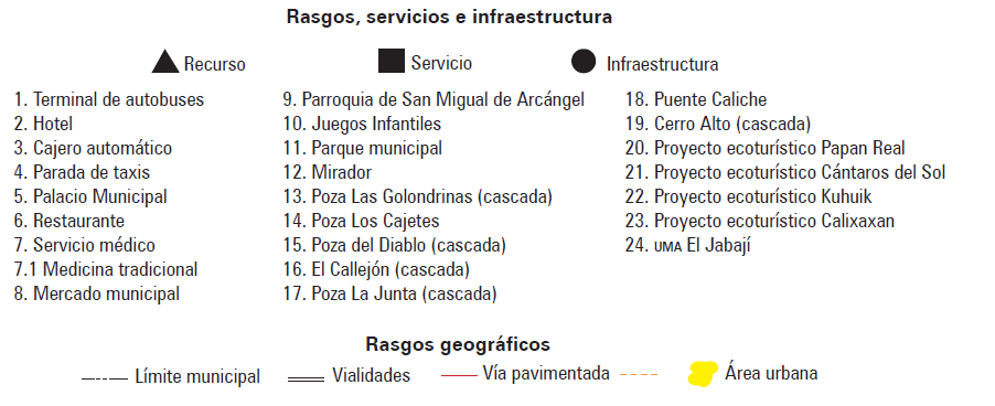 Figura 4. Mapa de infraestructura, servicios y recursos turísticos del municipio de Zozocolco de Hidalgo