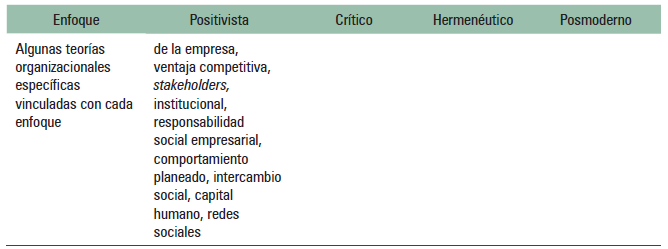 Cuadro 1. Enfoques filosóficos, teorías sociales generales y teorías organizacionales específicas