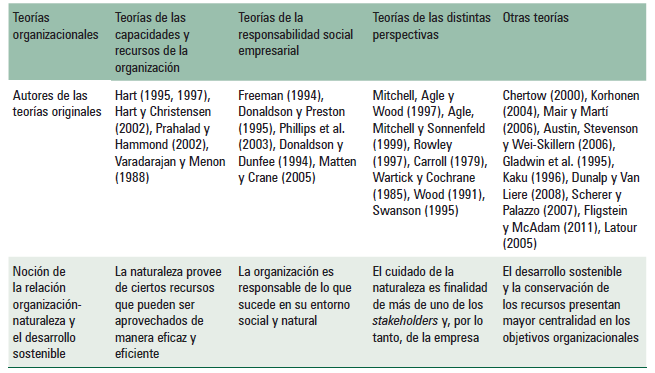 3.2.4 Otras teorías que relacionan a la empresa con su entorno natural y el desarrollo sostenible