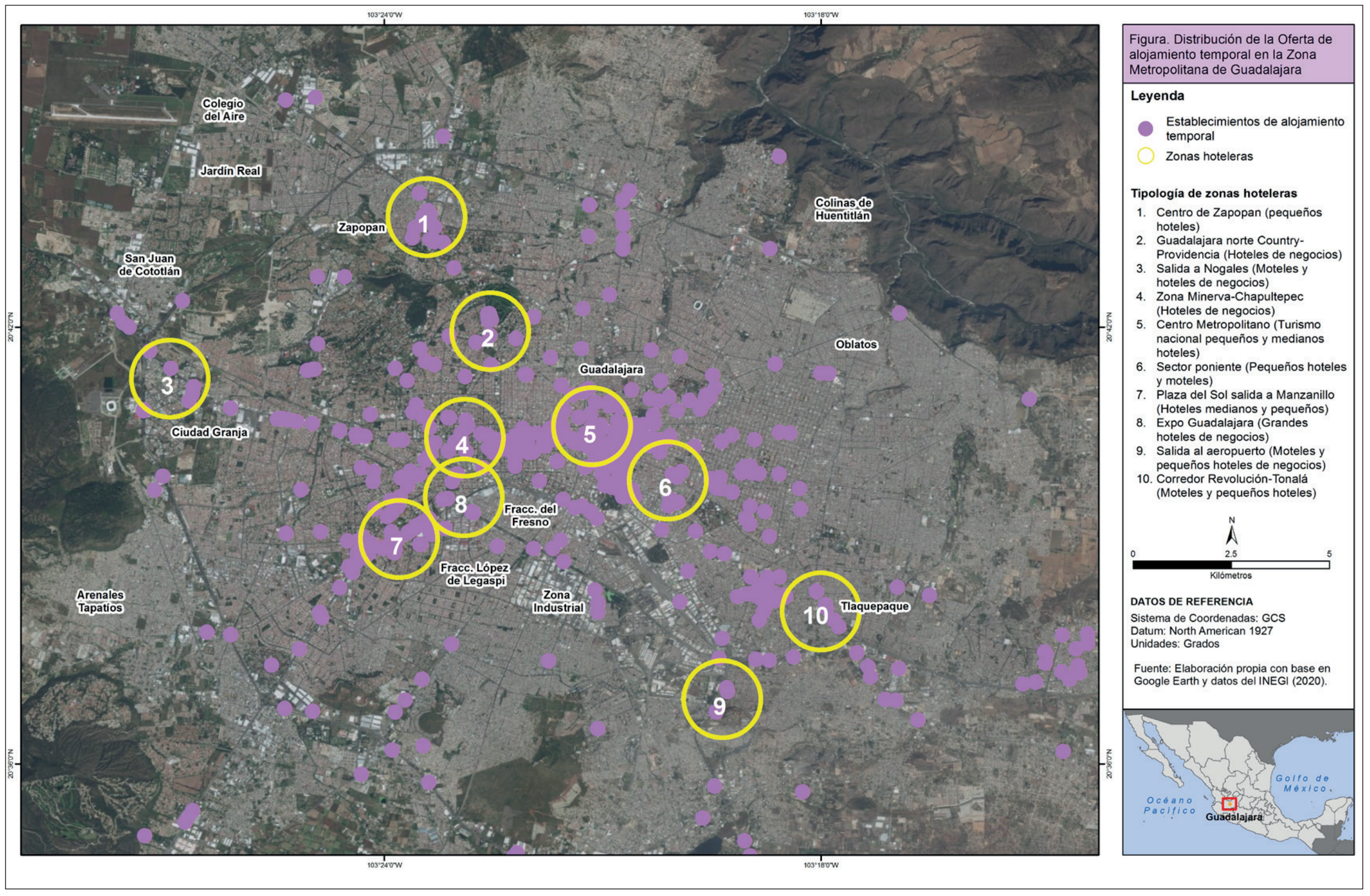Figura 3. Polígonos de oferta de servicios de alojamiento en la zona metropolitana de Guadalajara