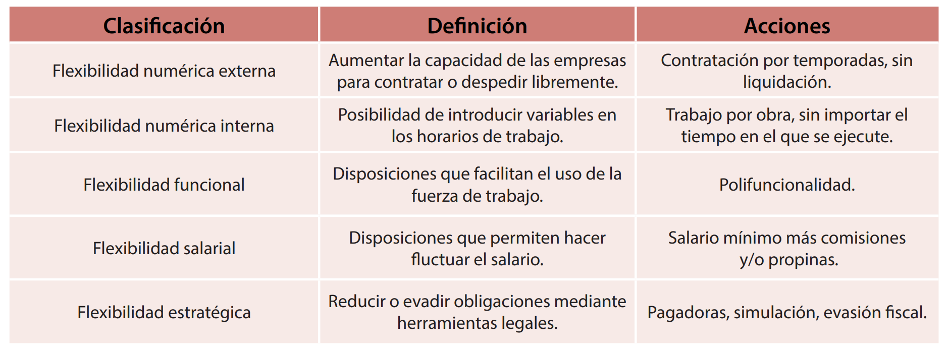 Tabla 1. Tipos de flexibilización laboral