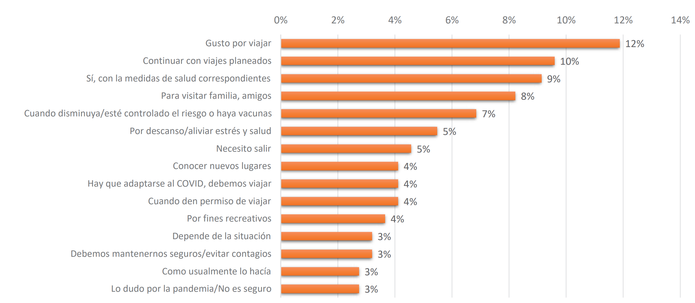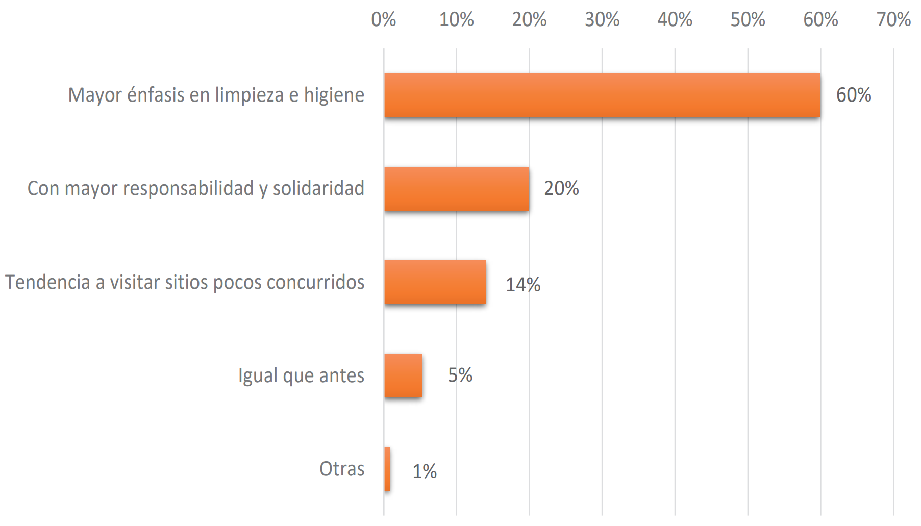 Entre los resultados obtenidos destaca que, además de las precauciones sanitarias, los futuros visitantes muestran cautela frente a las perspectivas económicas y la inseguridad, que se ha convertido en un riesgo permanente en todo el país. Las respuestas también demuestran que las vacaciones y los viajes no son considerados un bien de lujo o suntuario, sino que son percibidos como actividades normales que responden a la necesidad de descansar, recuperarse y convivir con la familia, habiendo desarrollado un conjunto de hábitos de viaje (Zieba, 2017).