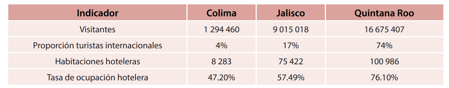 Tabla 2. Indicadores de actividad turística en Colima y destinos competidores, 2018