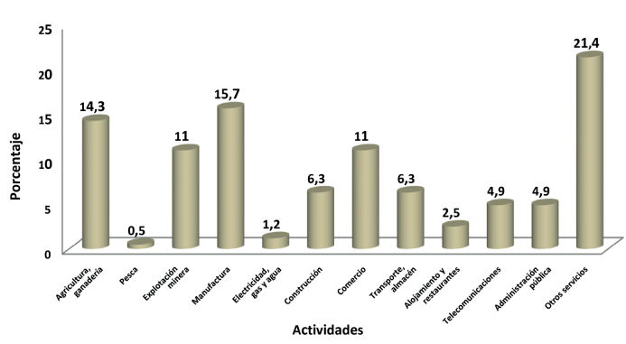 Ello explica por qué otros sectores han crecido y adquirido mayor relevancia en la economía regional. En primer lugar, la manufactura que aporta 15.7% y en segundo lugar la agricultura con una participación de 14.3 %. La minería es la cuarta actividad más importante con un aporte de 11% al PIB regional y produce principalmente oro, entre otros minerales. Esta actividad permite a la región recibir ingresos por concepto de transferencia de canon minero que en 2016 registró 253 millones de soles (El Comercio, 1 de agosto 2017).