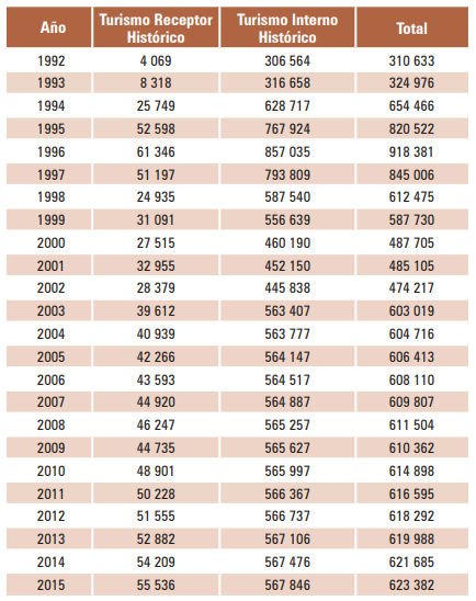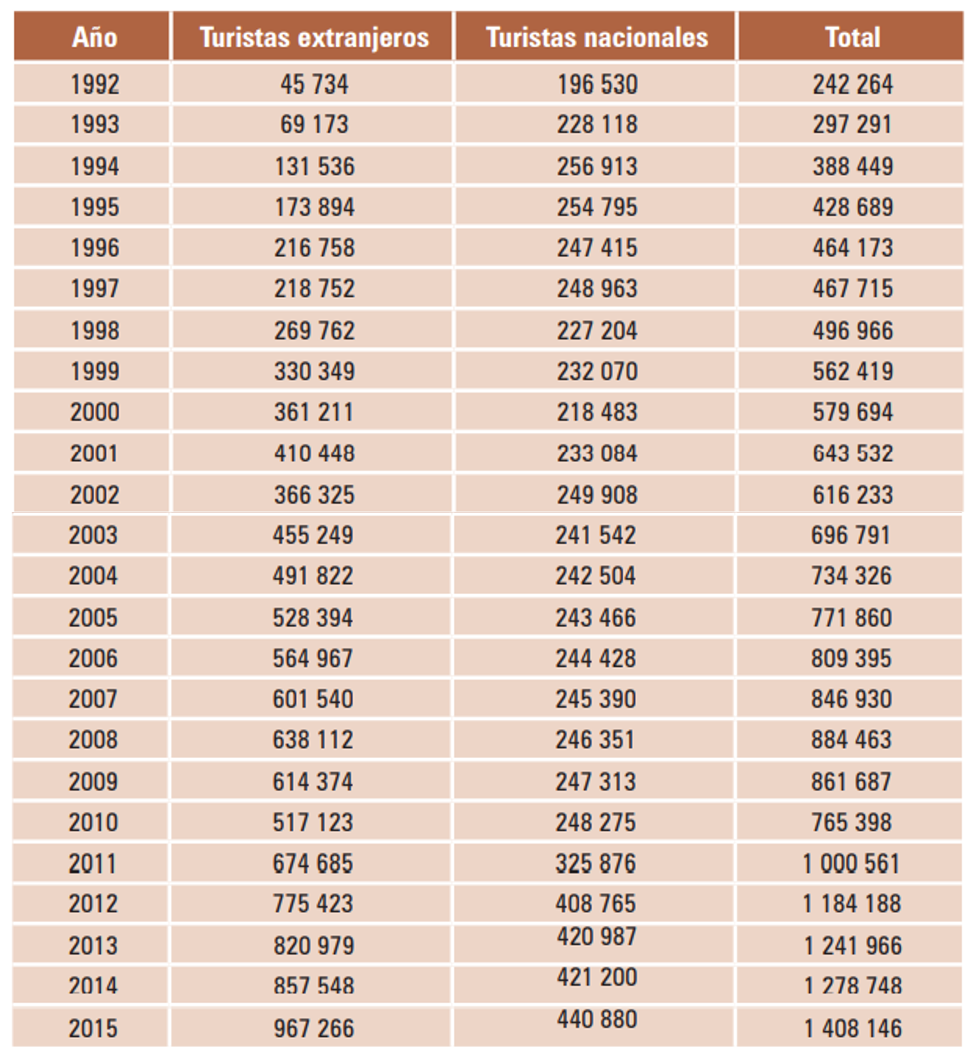 Llama la atención que, a mediados de la década de 1990, el crecimiento del turismo fue espectacular, llegando a recibir en total algo más de 918 mil visitantes en