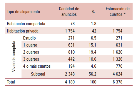 * El número de cuartos estimados se determinó con base en el número de cuartos que ofrecen los anuncios.
